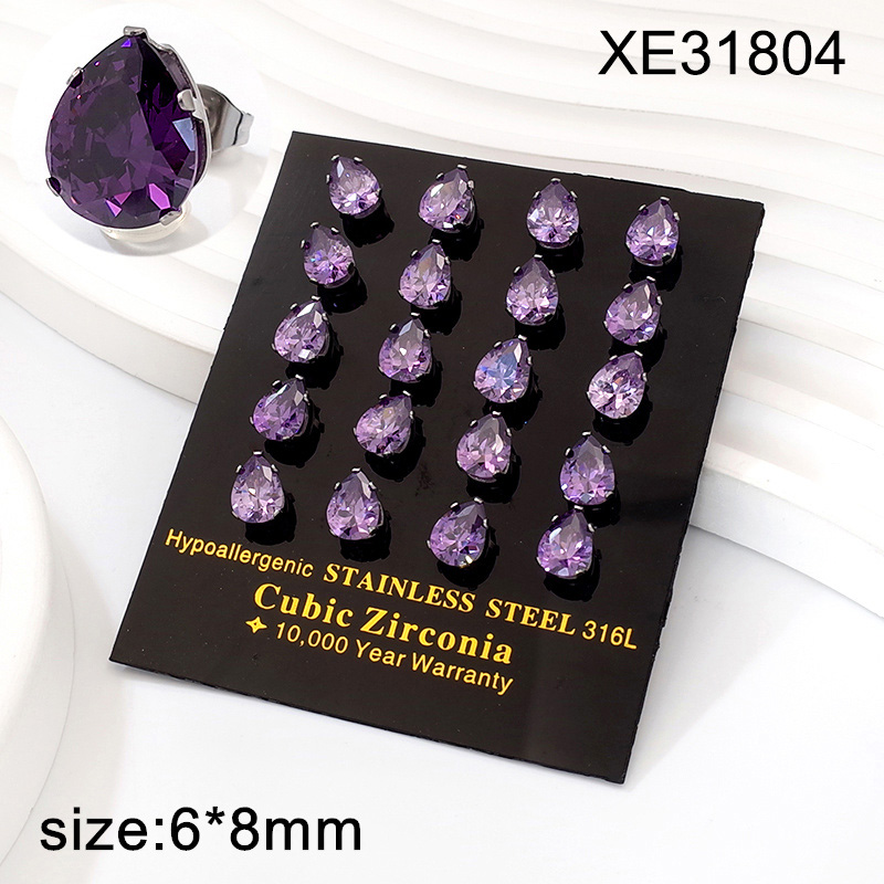 Home > Level A Stainless Steel Jewelry Hot Sale Steel color Purple Water Drip zirconium Earrings