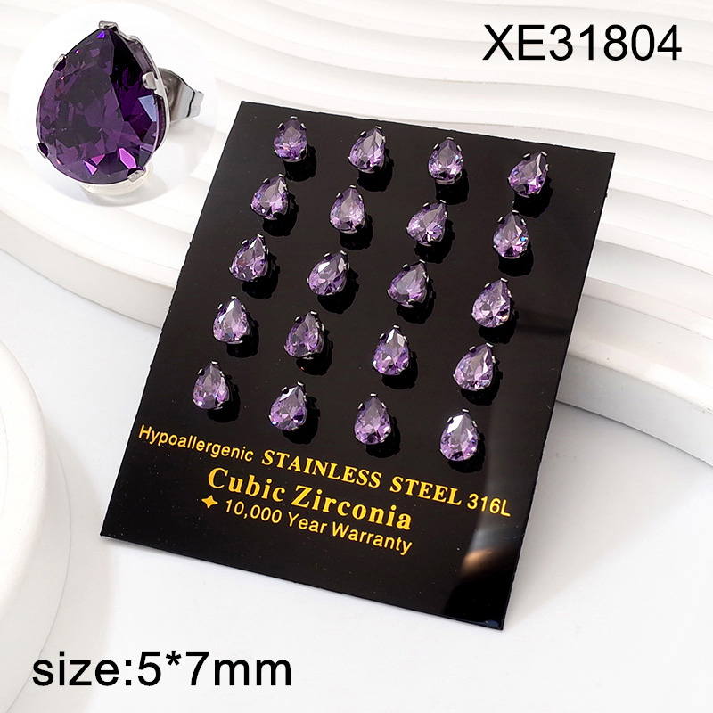 Home > Level A Stainless Steel Jewelry Hot Sale Steel color Purple Water Drip zirconium Earrings