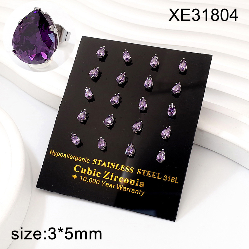 Home > Level A Stainless Steel Jewelry Hot Sale Steel color Purple Water Drip zirconium Earrings