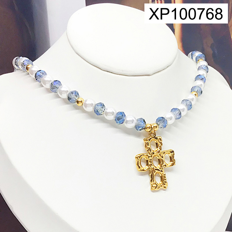 Home > Level B Stainless Steel New Trendy Women Jewelry Pearl Style/Plastic Beads Cross Golden Pendant