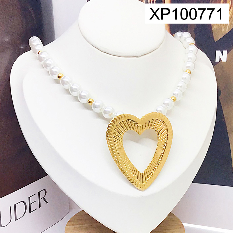 Home > Level B Stainless Steel New Trendy Women Jewelry Pearl Style/Plastic Beads Heart Golden Pendant