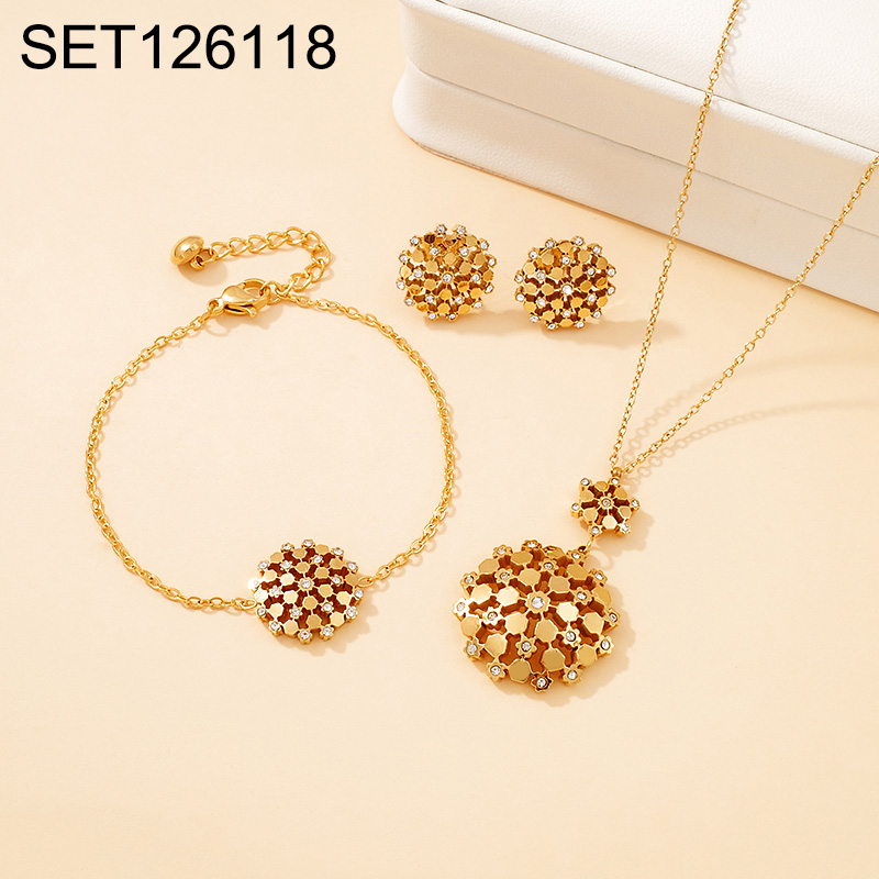 Level A Stainless Steel New Trendy Women Jewelry Flower Golden 3pcs SET