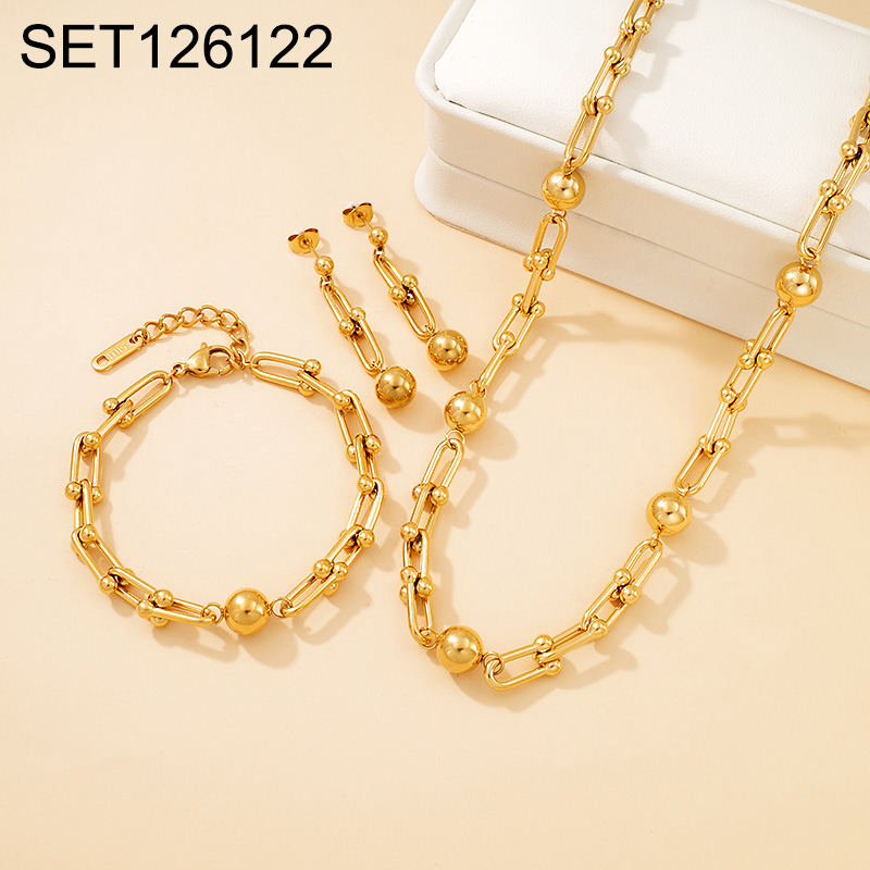 Home > Level A Stainless Steel New Trendy Women Jewelry Horseshoe buckle Bead Golden 3pcs SET