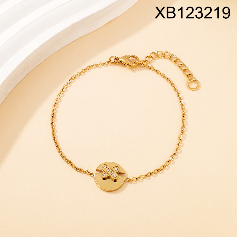 Home > Level A Stainless Steel New Trendy Women Jewelry Round Cross Golden Bracelet