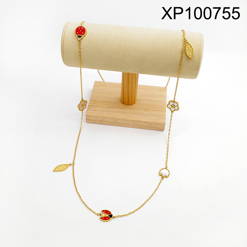 Home > Level A Stainless Steel New Trendy Women Jewelry Animal Ladybug Flower Golden Sweater Chain Pendant