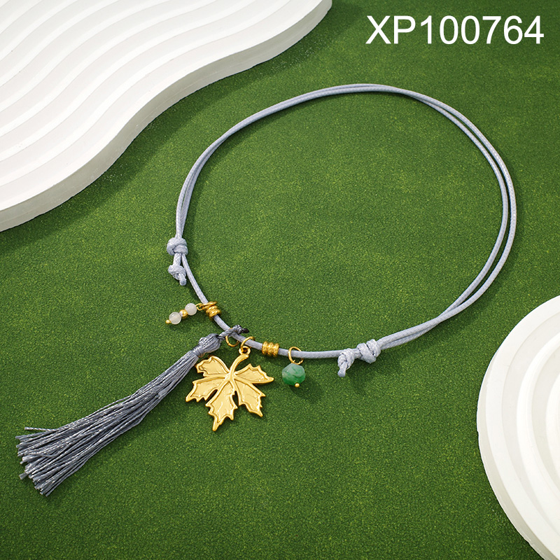Home > Level B Stainless Steel New Trendy Women Jewelry Maple Leaf Tassel Golden Pull the rope Pendant