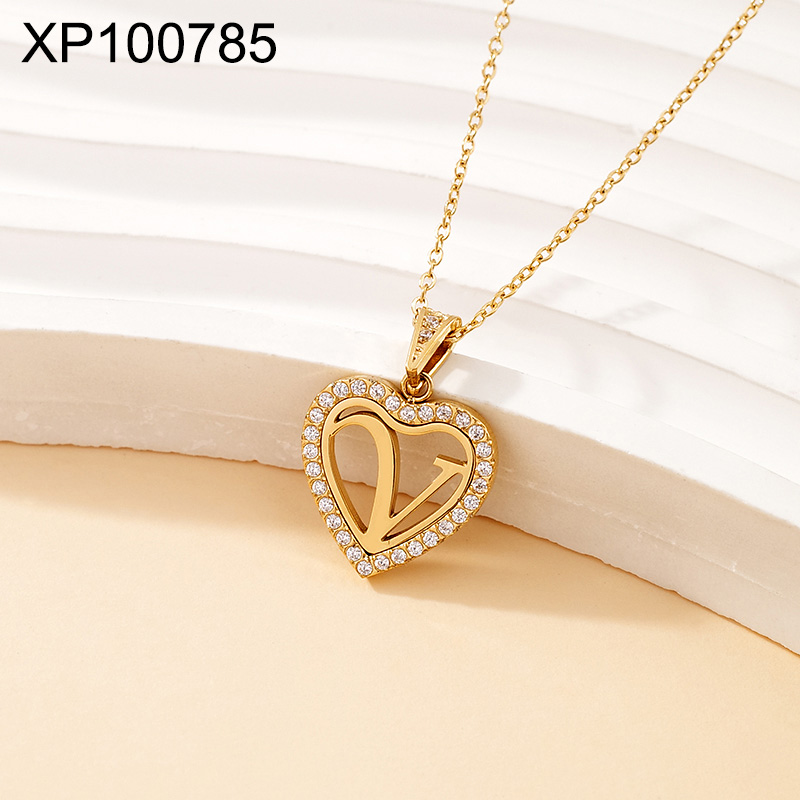 Level A Stainless Steel New Trendy Women Jewelry Heart Letter V Golden Pendant
