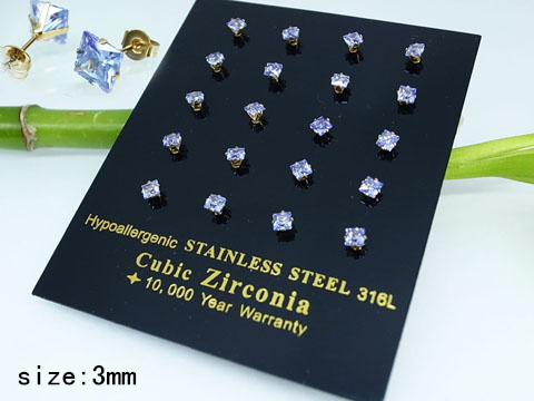 Stainless Steel Jewelry Golden Turn blue Square Zircon Earrings