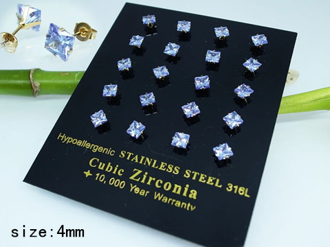 Home > Stainless Steel Jewelry Golden Turn blue Square Zircon Earrings