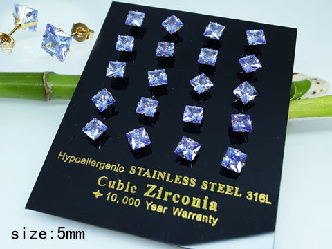 Stainless Steel Jewelry Golden Turn blue Square Zircon Earrings