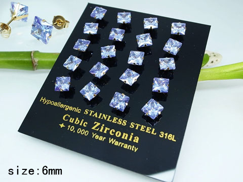 Stainless Steel Jewelry Golden Turn blue Square Zircon Earrings