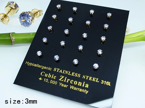 Home > Stainless Steel Jewelry Golden Turn blue Round Zircon Earrings