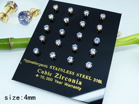 Home > Stainless Steel Jewelry Golden Turn blue Round Zircon Earrings