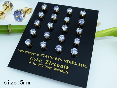 Home > Stainless Steel Jewelry Golden Turn blue Round Zircon Earrings