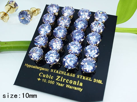 Stainless Steel Jewelry Golden Turn blue Round Zircon Earrings