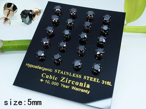 Home > Stainless Steel Jewelry Rose gold Black Round Zircon Earrings