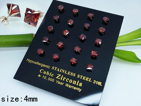 Stainless Steel Jewelry Rose gold Red Square Zircon Earrings