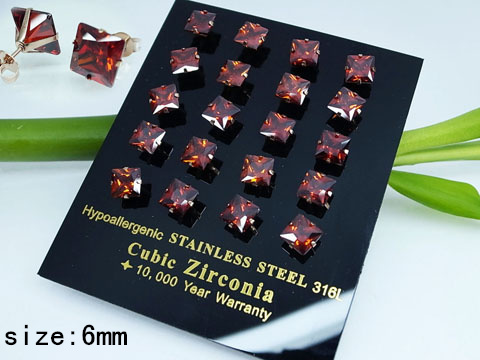 Stainless Steel Jewelry Rose gold Red Square Zircon Earrings
