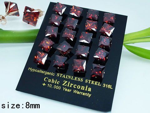 Home > Stainless Steel Jewelry Rose gold Red Square Zircon Earrings