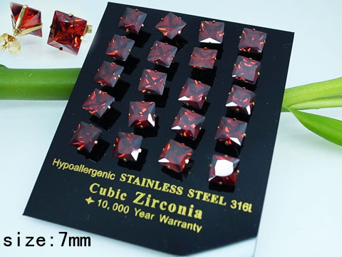 Home > Stainless Steel Jewelry Golden Red Square Zircon Earrings