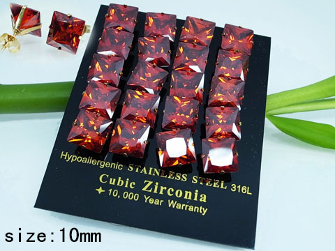 Home > Stainless Steel Jewelry Golden Red Square Zircon Earrings