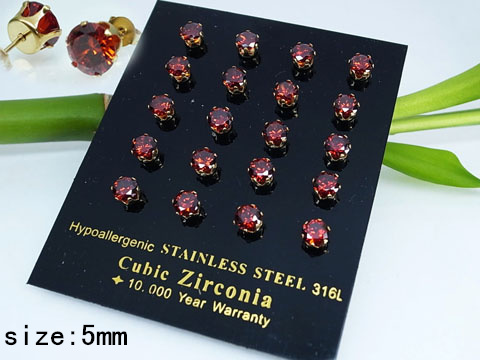 Home > Stainless Steel Jewelry Golden Red Round Zircon Earrings