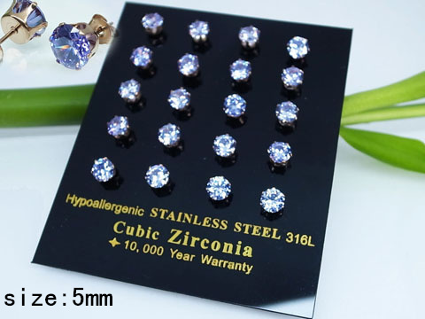 Home > Stainless Steel Jewelry Rose gold Purple Round Zircon Earrings