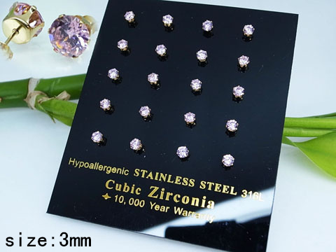Home > Stainless Steel Jewelry Golden Pink Round Zircon Earrings