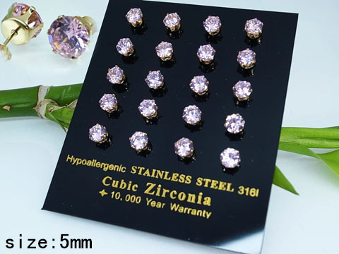Home > Stainless Steel Jewelry Golden Pink Round Zircon Earrings