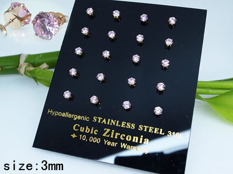 Home > Stainless Steel Jewelry Rose gold Pink Round Zircon Earrings