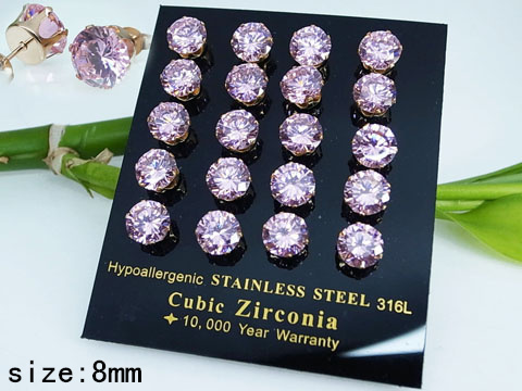 Home > Stainless Steel Jewelry Rose gold Pink Round Zircon Earrings