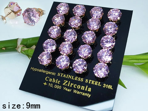 Home > Stainless Steel Jewelry Rose gold Pink Round Zircon Earrings