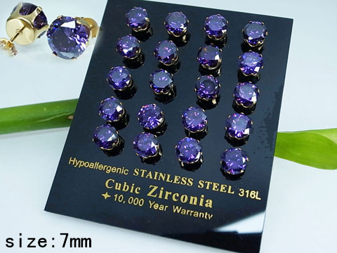 Home > Stainless Steel Jewelry Golden Purple Round Zircon Earrings