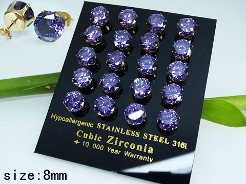 Home > Stainless Steel Jewelry Golden Purple Round Zircon Earrings
