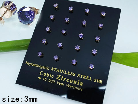 Home > Stainless Steel Jewelry Rose gold Purple Round Zircon Earrings