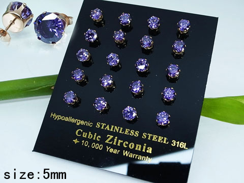 Home > Stainless Steel Jewelry Rose gold Purple Round Zircon Earrings