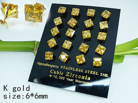Stainless Steel Jewelry Golden Yellow Square Zircon Earrings