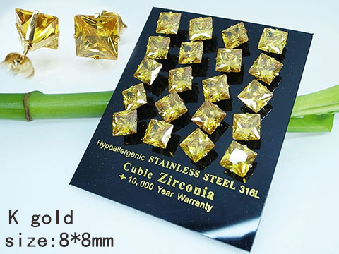 Home > Stainless Steel Jewelry Golden Yellow Square Zircon Earrings