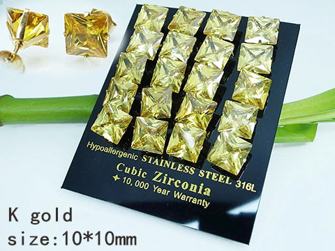 Stainless Steel Jewelry Golden Yellow Square Zircon Earrings