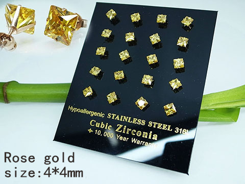 Stainless Steel Jewelry Rose gold Yellow Square Zircon Earrings