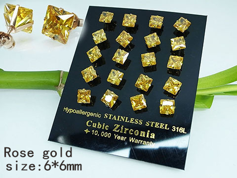 Stainless Steel Jewelry Rose gold Yellow Square Zircon Earrings