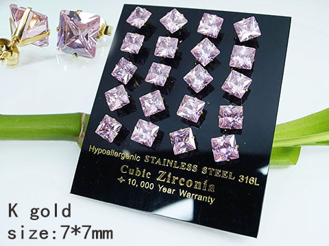 Home > Stainless Steel Jewelry Golden Pink Square Zircon Earrings
