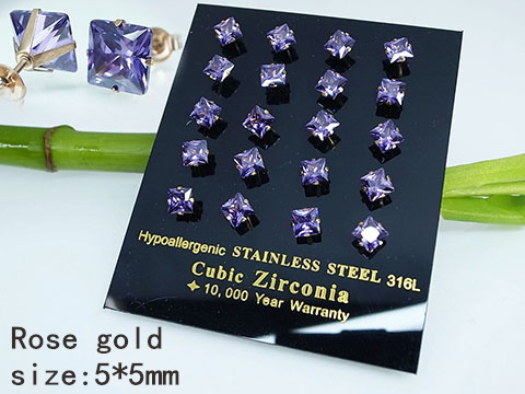 Home > Stainless Steel Jewelry Rose gold Purple Square Zircon Earrings