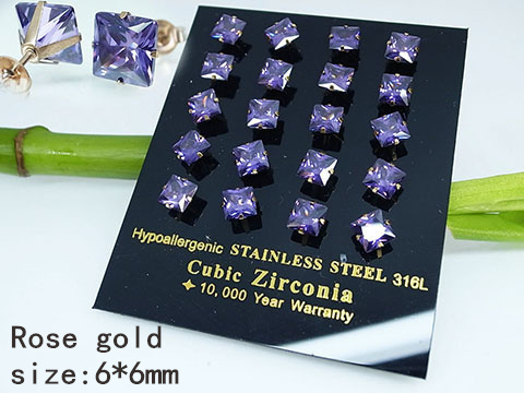 Home > Stainless Steel Jewelry Rose gold Purple Square Zircon Earrings