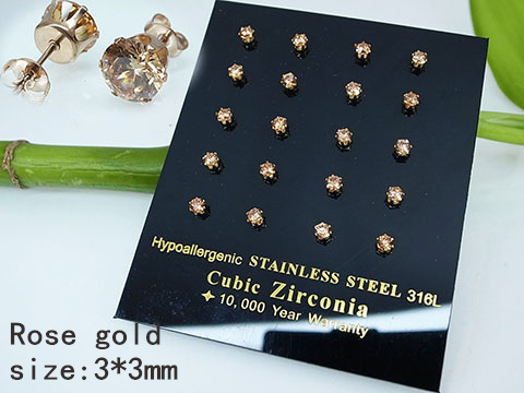 Stainless Steel Jewelry Rose gold Champagne Round Zircon Earrings