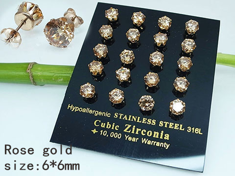 Stainless Steel Jewelry Rose gold Champagne Round Zircon Earrings
