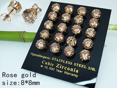 Stainless Steel Jewelry Rose gold Champagne Round Zircon Earrings