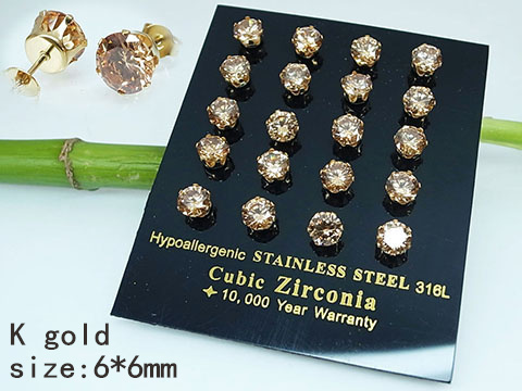 Home > Stainless Steel Jewelry Golden Champagne Round Zircon Earrings