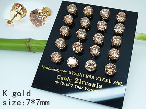 Home > Stainless Steel Jewelry Golden Champagne Round Zircon Earrings