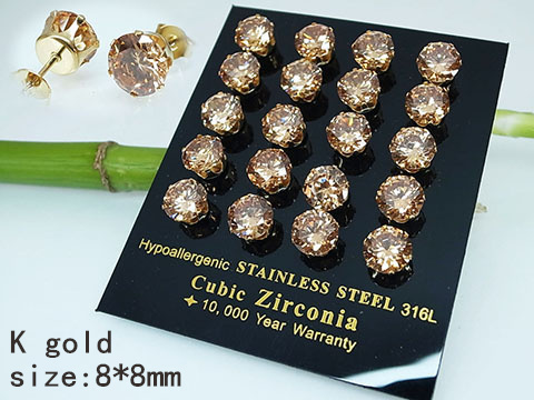 Home > Stainless Steel Jewelry Golden Champagne Round Zircon Earrings